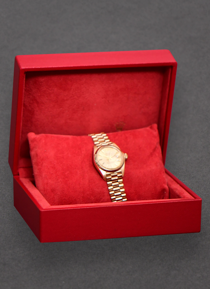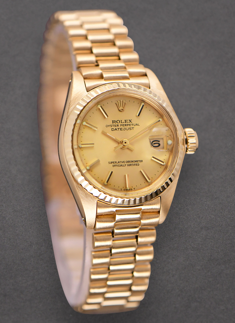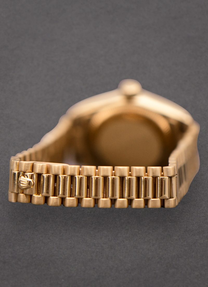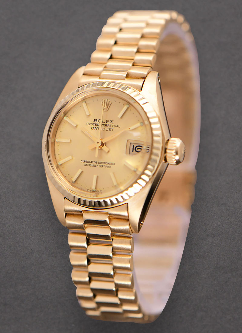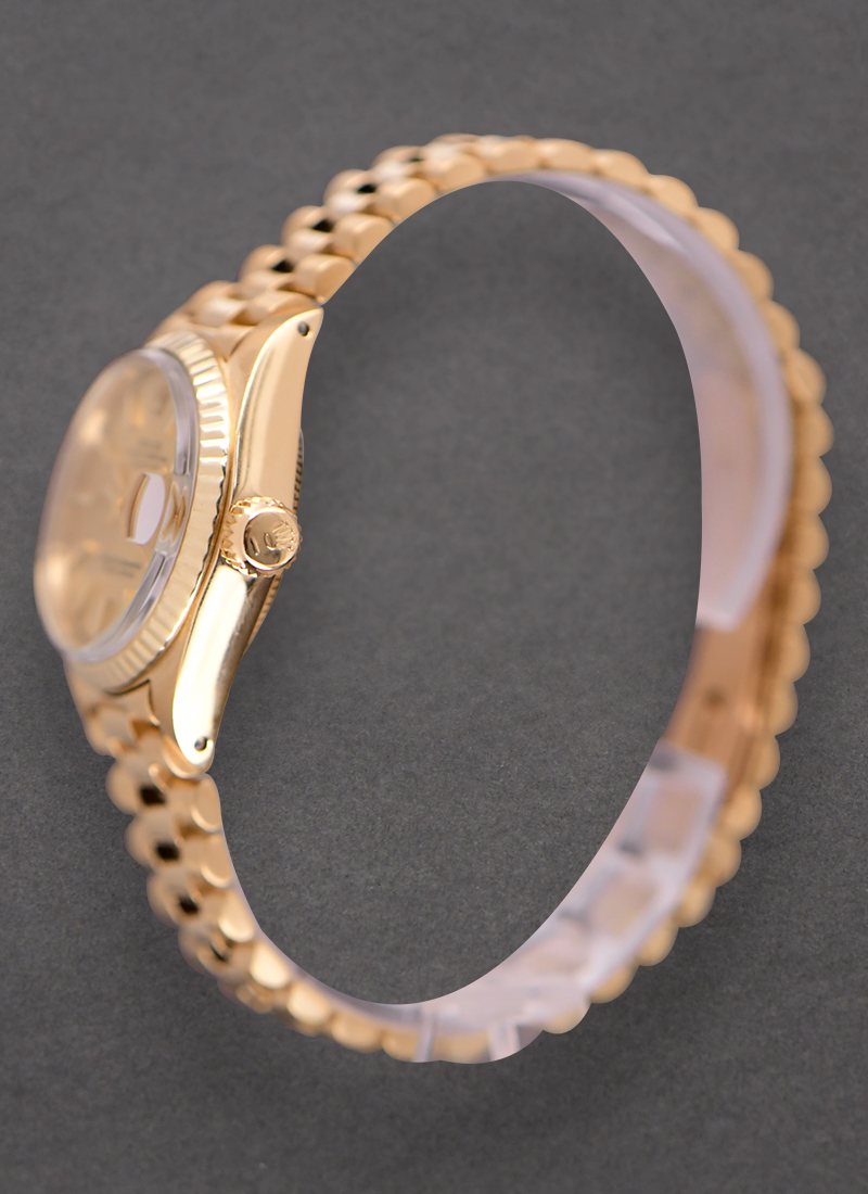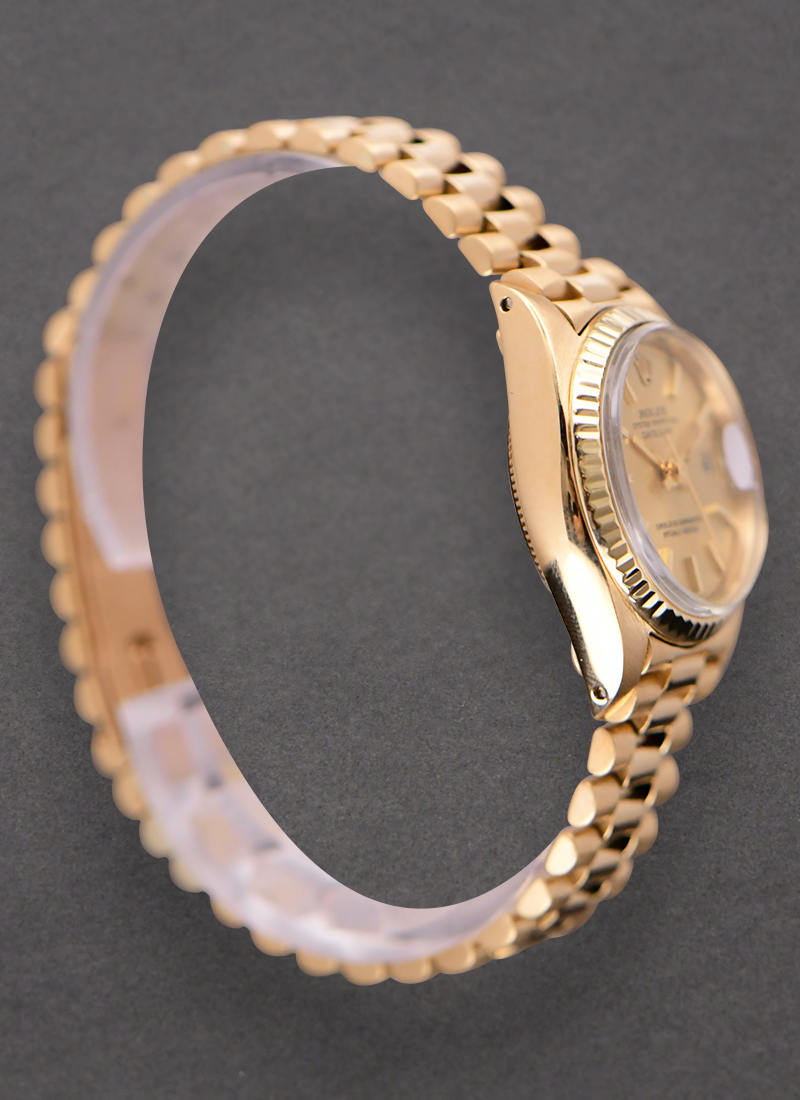 President 26mm in Yellow Gold with Fluted Bezel on President Bracelet with Champagne Stick Dial 6917