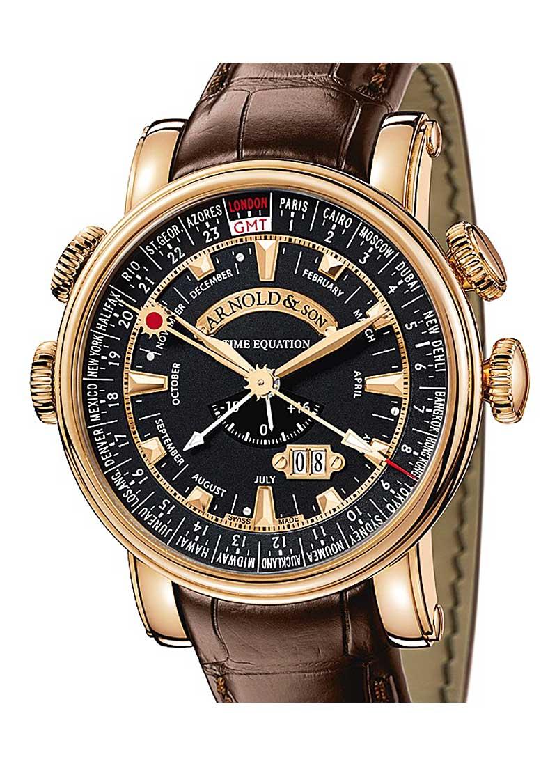 Hornet World Timer 47mm Automatic in Rose Gold on Brown Crocodile Leather Strap with Black Dial 1H6AP.B06A.C60B
