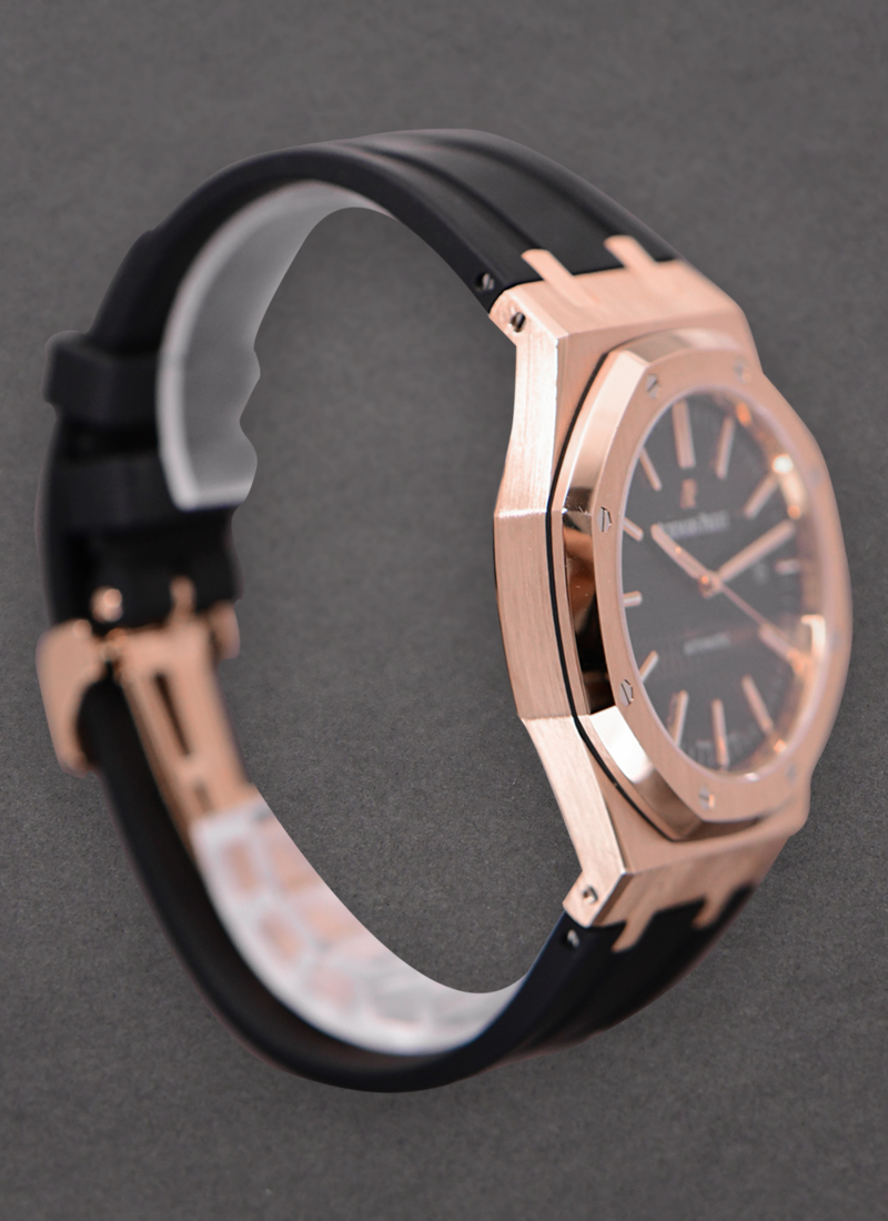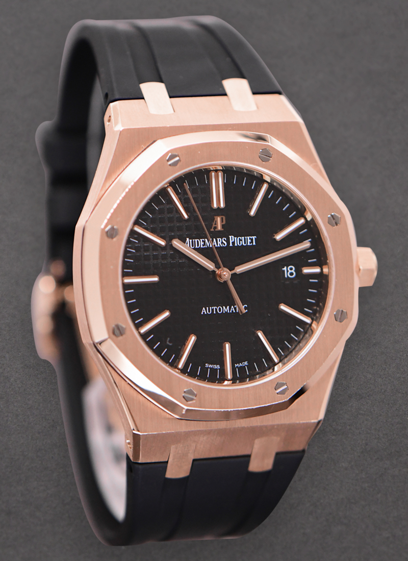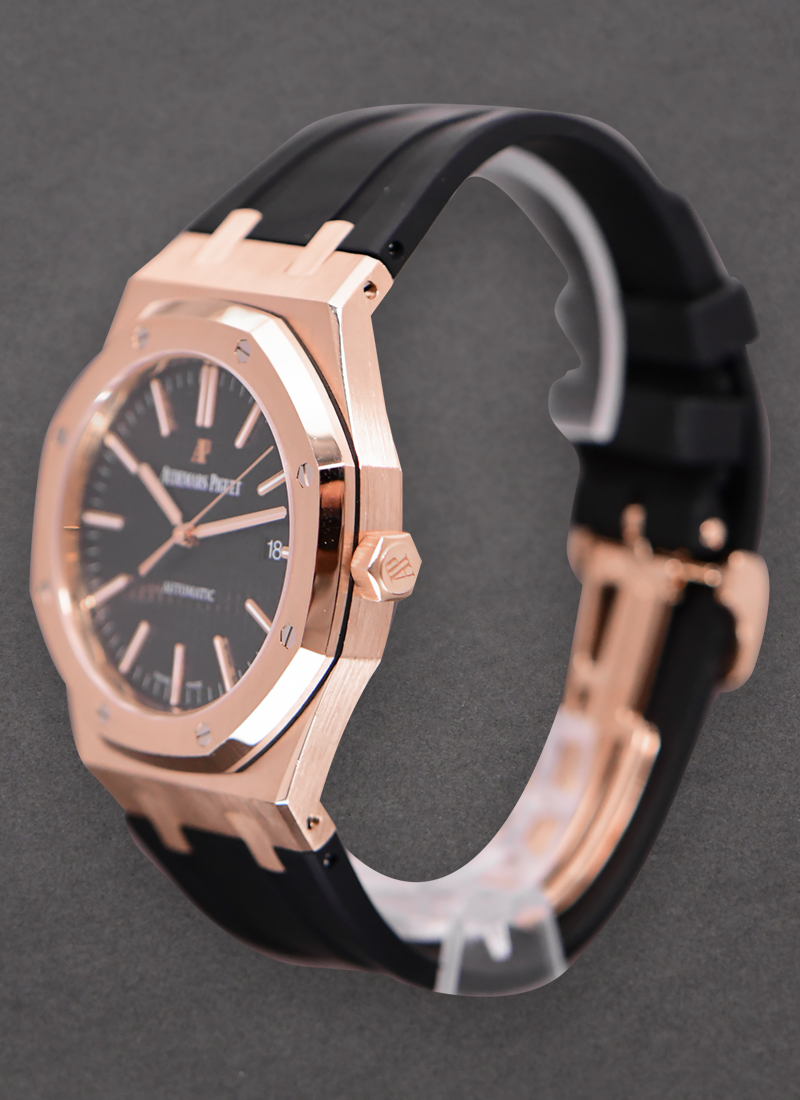 Royal Oak Automatic 41mm in Rose Gold on Black Rubber B Strap with Black Dial 15400OR.OO.D002CR.01