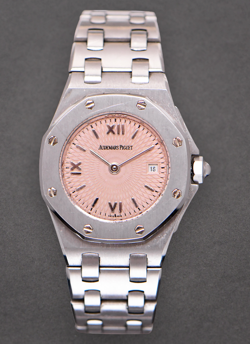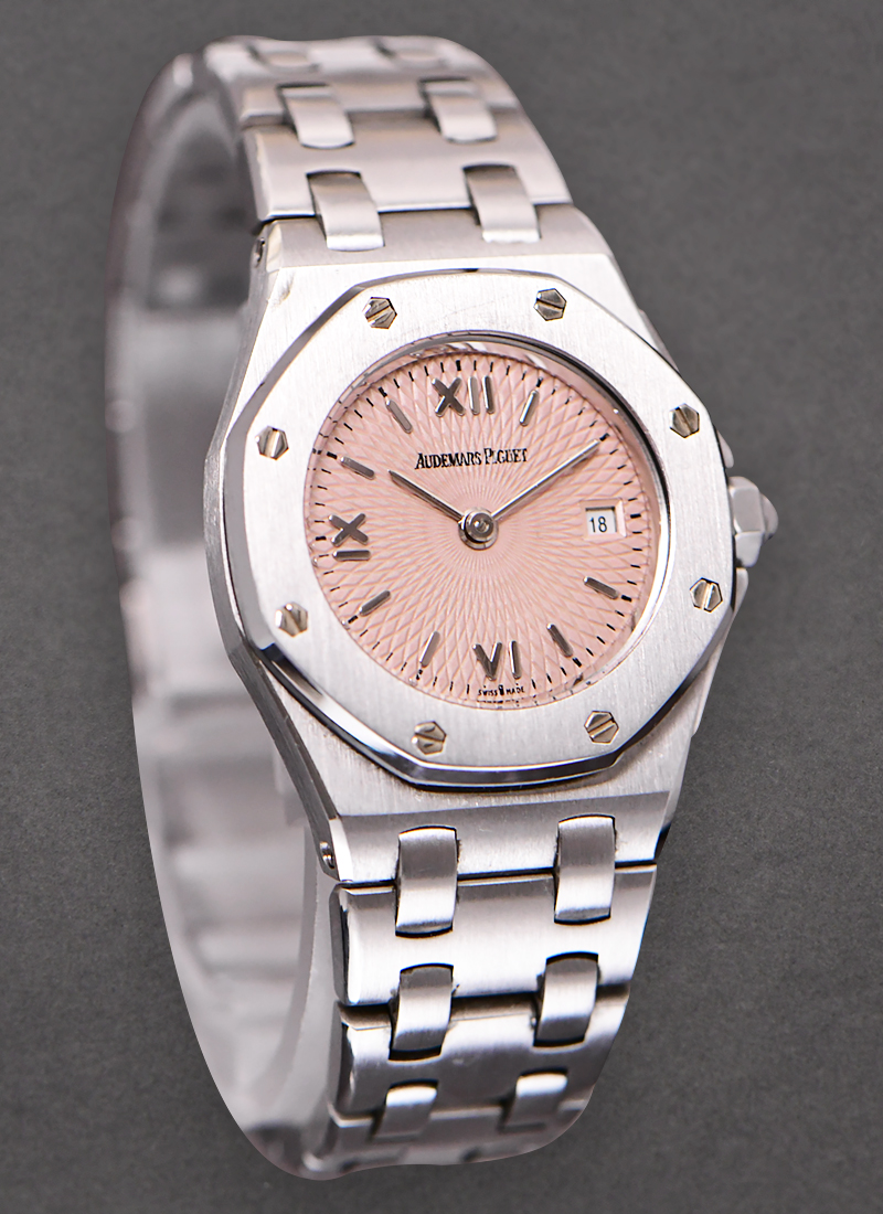 Royal Oak Offshore Ladys 27mm Steel on Bracelet with White and Pink Textured Dial 67150ST.0.1108ST.02