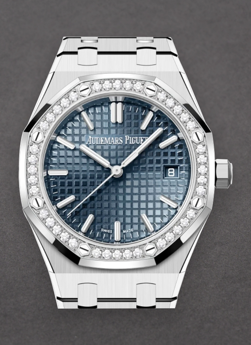 Royal Oak 50th Anniversary 34mm in Steel with Diamond Bezel on Steel Bracelet with Blue Tapisserie Dial 77451ST.ZZ.1361ST.02