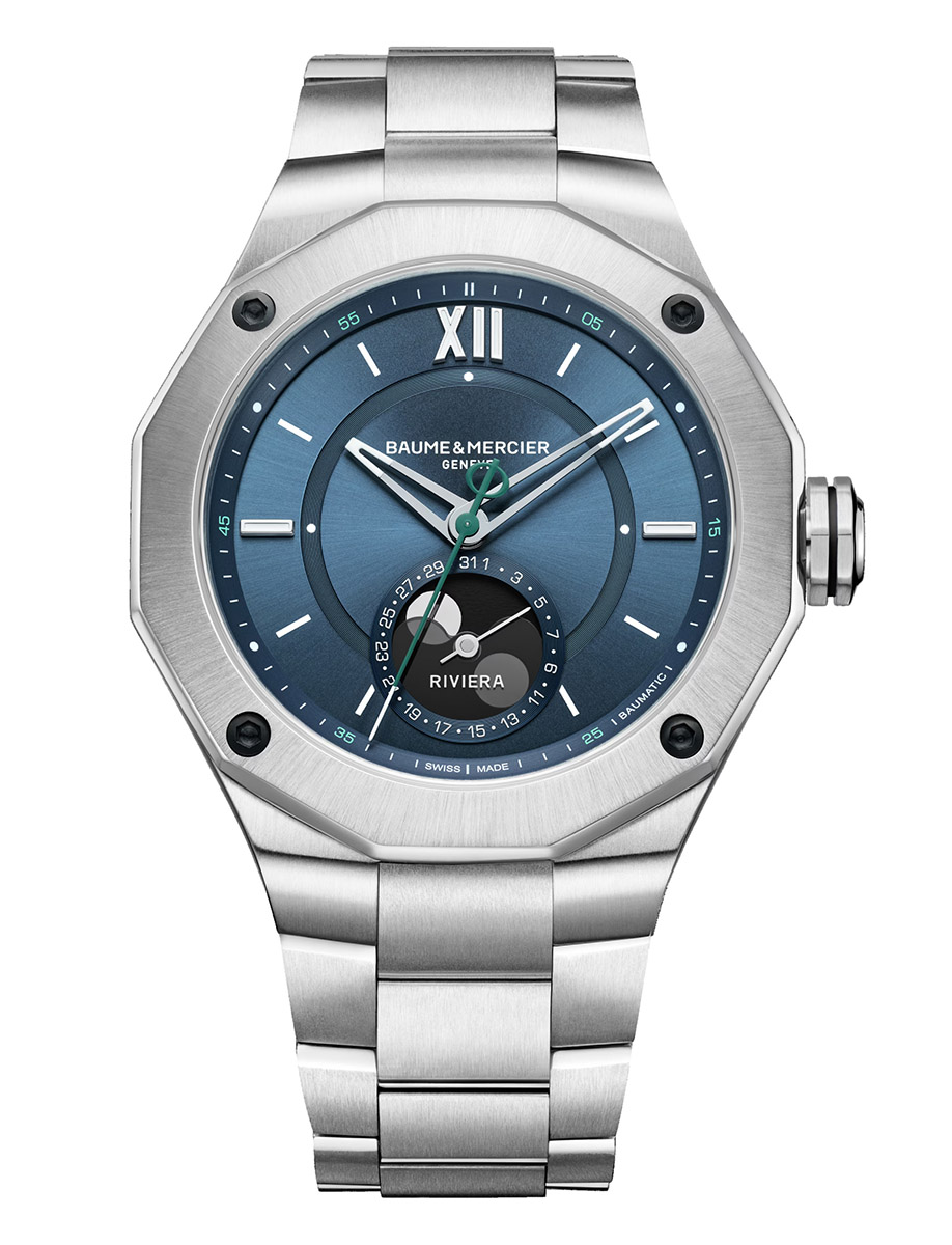 Riviera Moon Phase 43mm Automatic in Steel on Steel Bracelet with Blue Dial MOA10682