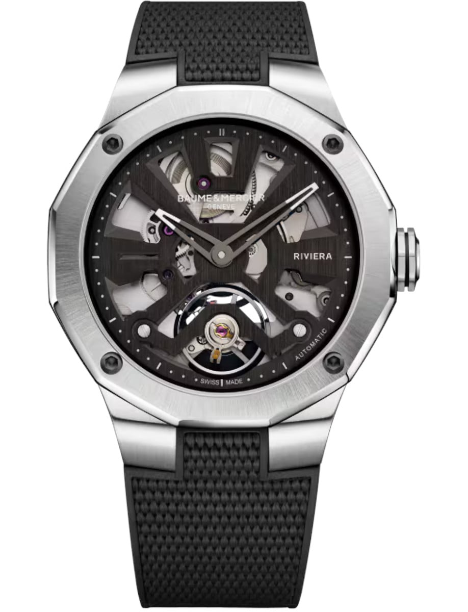 Riviera 42mm Automatic in Steel on Black Rubber Strap with Skeleton Dial MOA10721