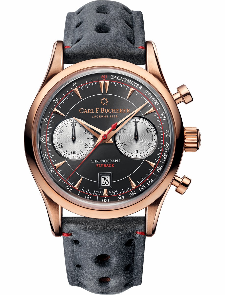 Manero Flyback Chronograph in Rose Gold on Dark Grey Kudu Leather Strap with Black Dial 00.10919.03.33.02