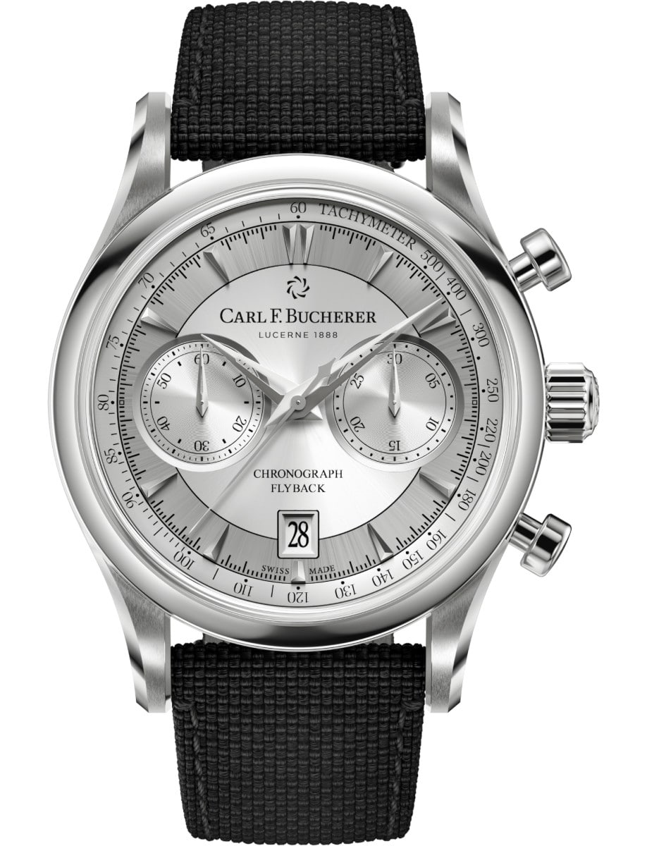 Manero Flyback Chronograph in Steel on Black Textile Strap with Silver Dial 00.10919.08.13.02