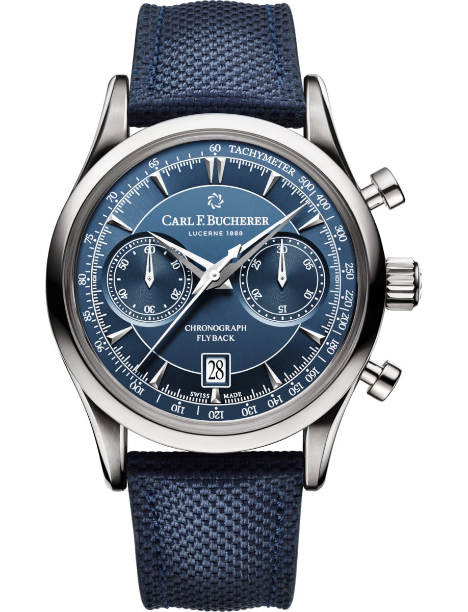 Manero Flyback Chronograph in Steel on Blue Textile Strap with Blue Dial 00.10919.08.53.01