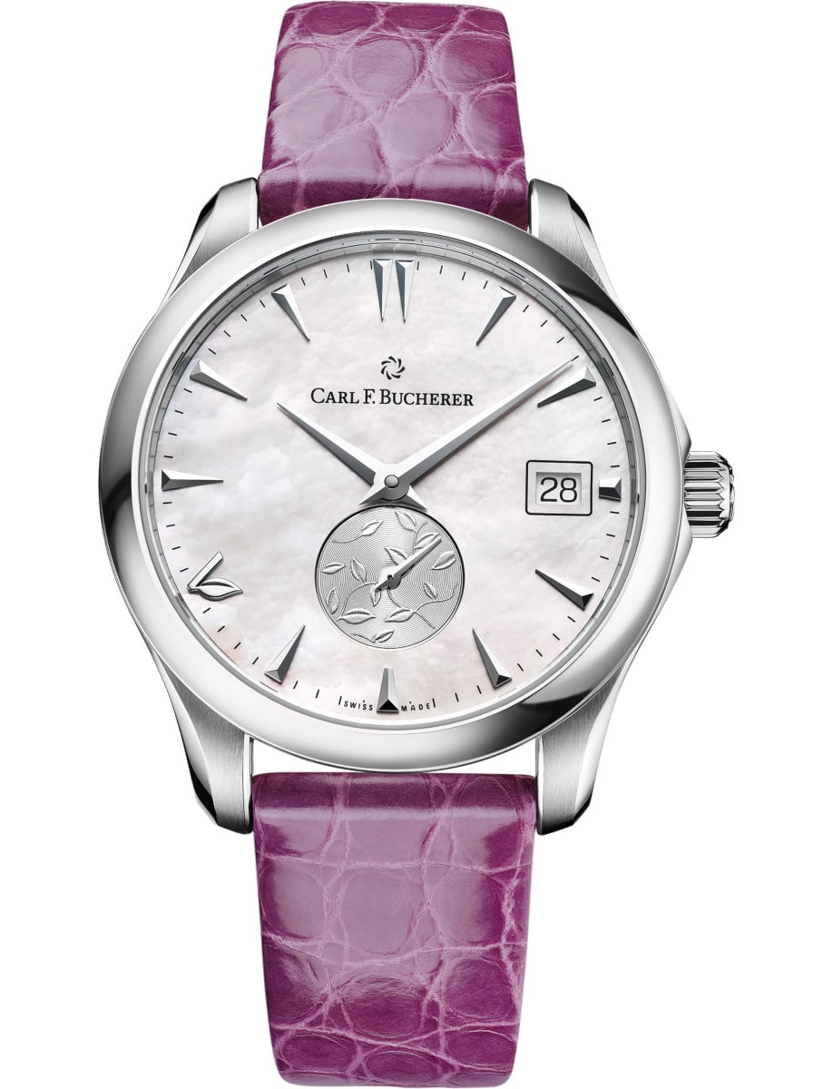 Manero Autodate Love 35.5mm Automatic in Steel on Purple Crocodile Leather Strap with MOP Dial 00.10922.08.73.01