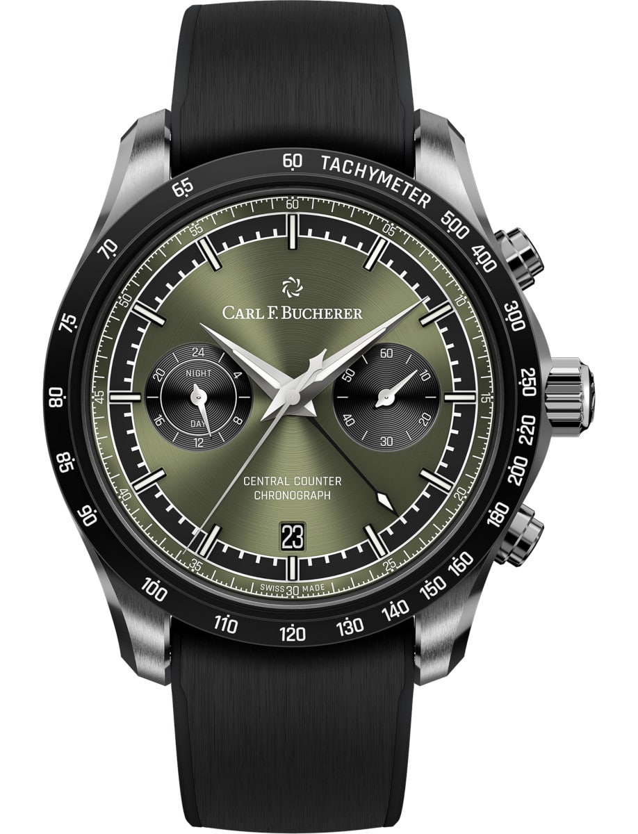 Manero Central Counter 42.5mm in Steel with DLC Coated Bezel on Black Rubber Strap with Green Dial 00.10923.08.93.02