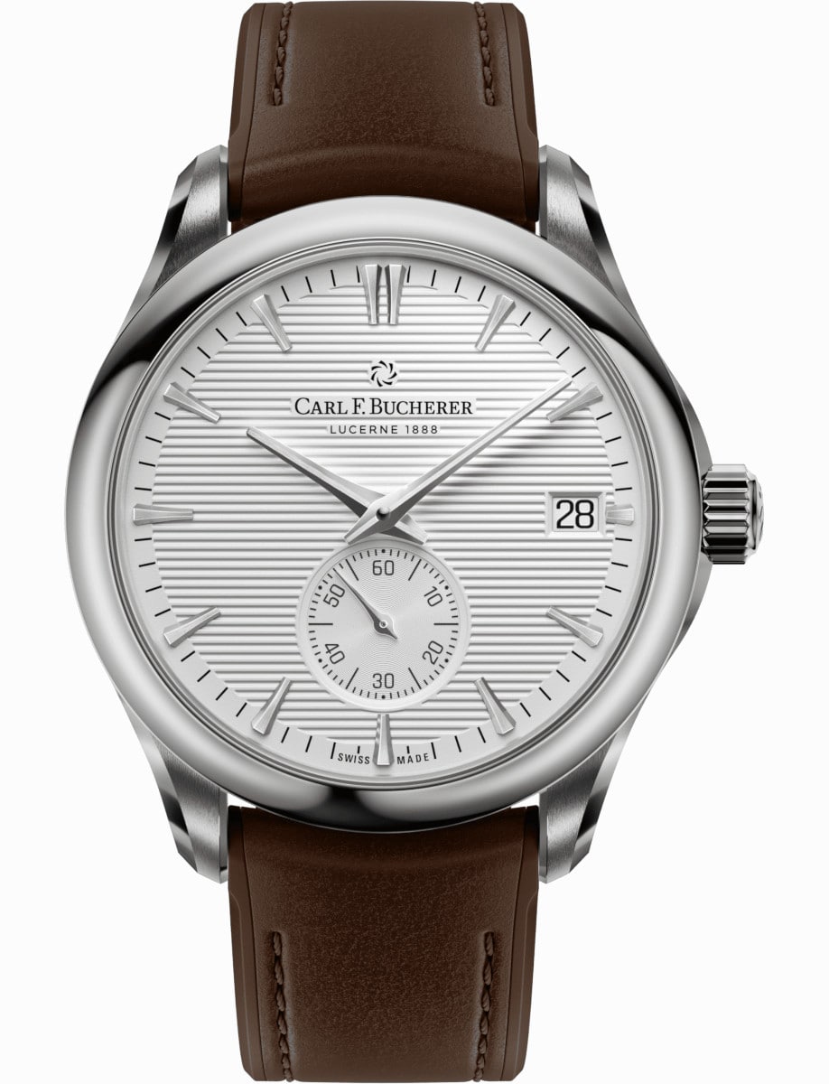 Manero Peripheral 40.6mm in Steel on Brown Rubber Strap with Silver Dial 00.10924.08.13.02