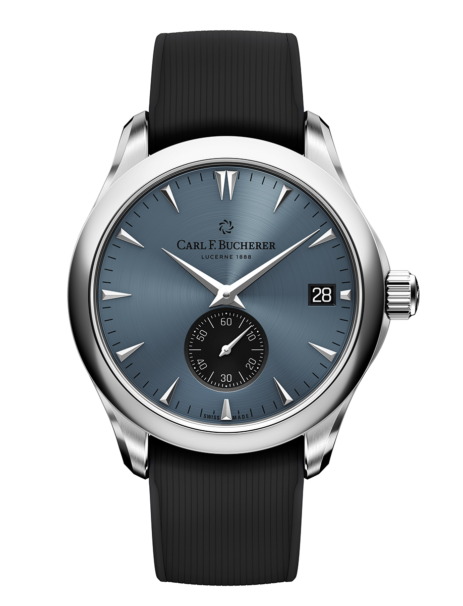 Manero Peripheral 40nn in Steel on Black Rubber Strap with Blue Dial 00.10924.08.53.01