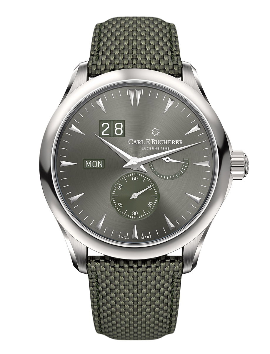 Manero Peripheral Bigdate 41.6mm in Steel on Olive Green Textile Strap with Dark Grey Dial 00.10926.08.93.01