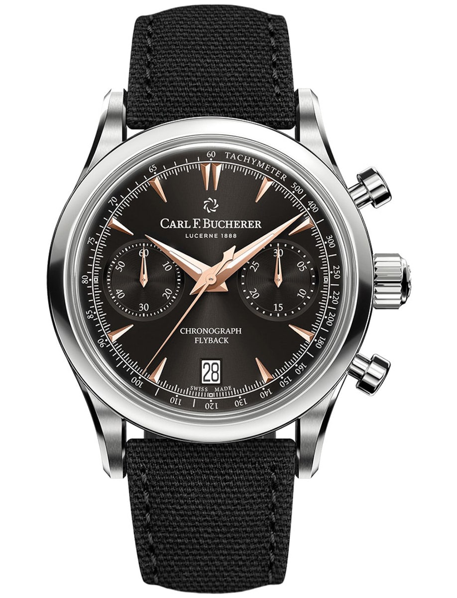 Manero Flyback Chronograph in Steel on Black Textile Strap with Black Dial 00.10927.08.33.01