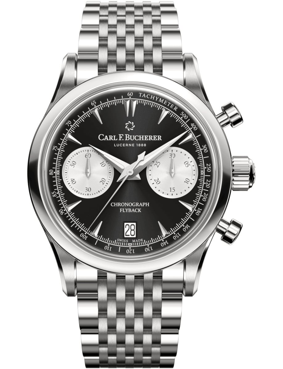 Manero Flyback Chronograph in Steel on Steel Bracelet with Black Dial - Silver Subdials 00.10927.08.33.22