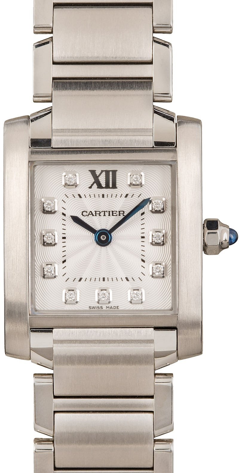 Tank Francaise Small Swiss Quartz in Steel On Steel Bracelet with Silvered Diamond Dial WE110006