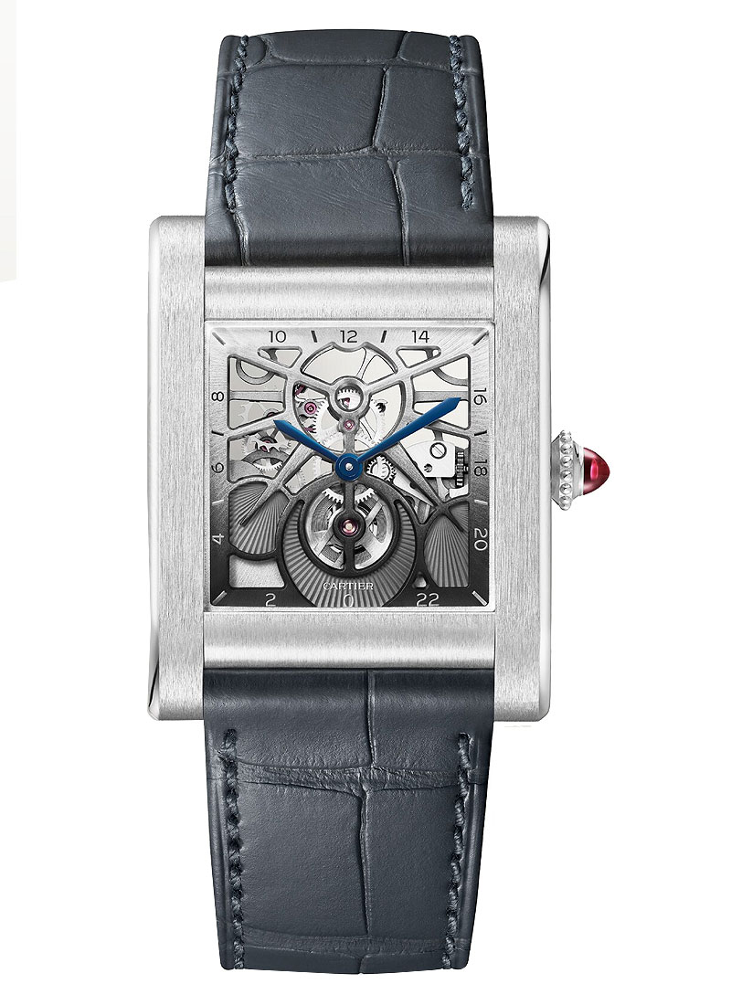 Tank Normale in Platinum on Grey Crocodile Leather Strap with Skeleton Dial WHTA0020