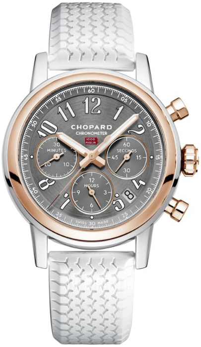 Mille Miglia Chronograph 39mm Automatic in Steel with Rose Gold Bezel on White Rubber Strap with Grey Dial 168588 6001