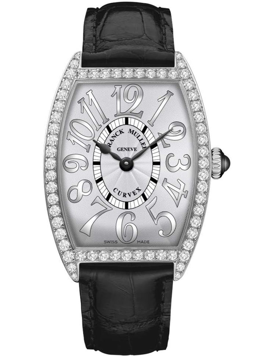 Cintree Curvex 25mm Quartz in Steel with Diamond Bezel on Black Alligator Leather Strap with Silver Dial 1752QZDPRELACE