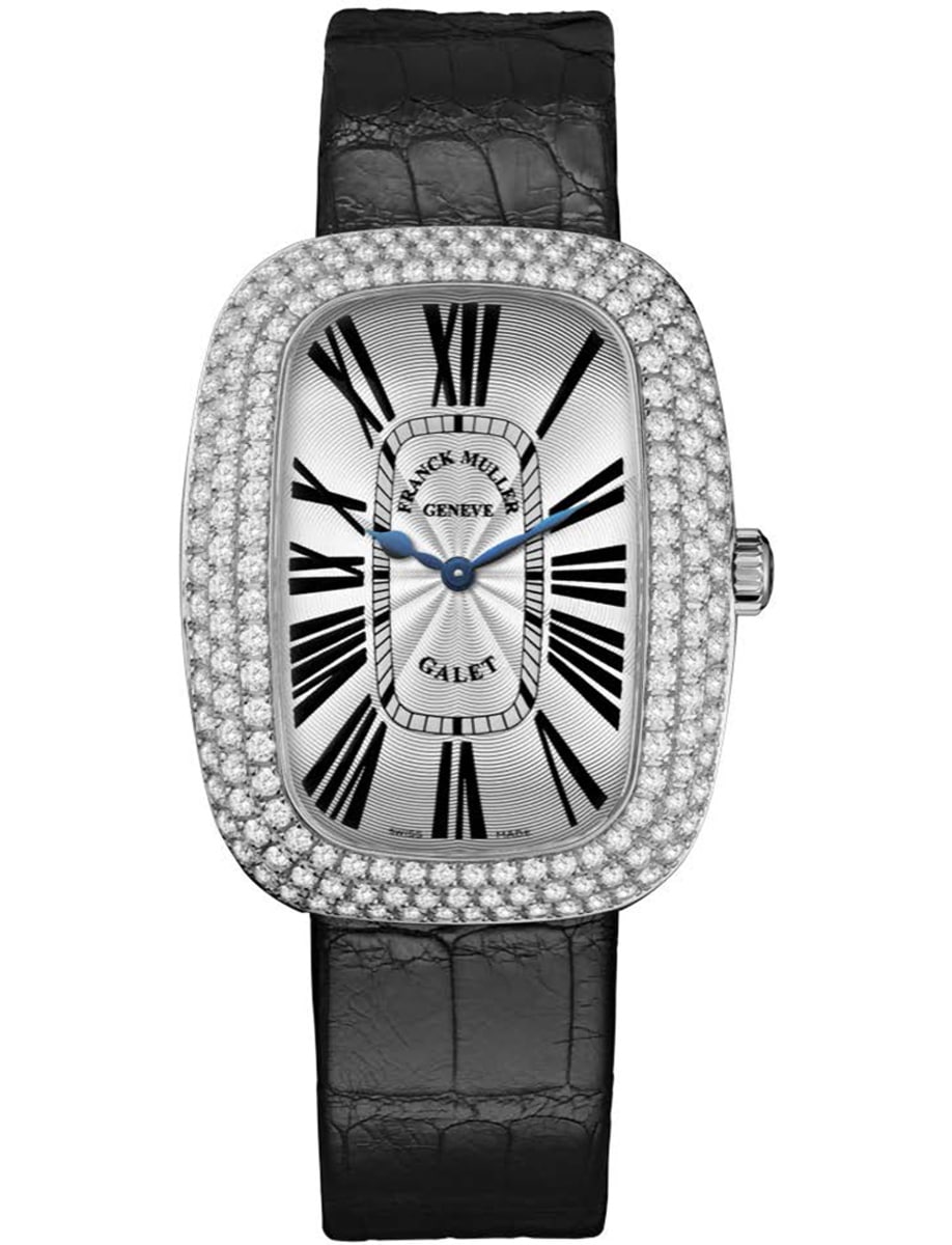 Lady Galet 28.75mm in Steel with Pave Diamond Bezel on Black Crocodile Leather Strap with Silver Dial 3002LQZRD3ACE