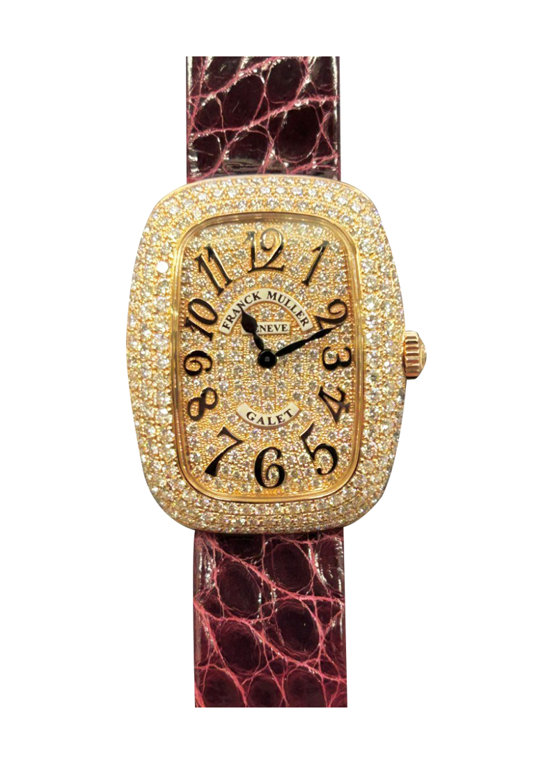 Lady Galet 28.75mm in Rose Gold with Pave Diamond Bezel on Red Crocodile Leather Strap with Pave Diamond Dial 3002 L QZ V D3 CD