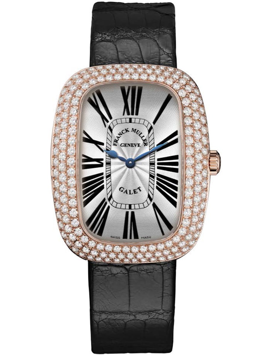 Lady Galet 34.1mm in Rose Gold with Pave Diamond Bezel on Black Crocodile Leather Strap with Silver Dial 3002MQZRD35NE