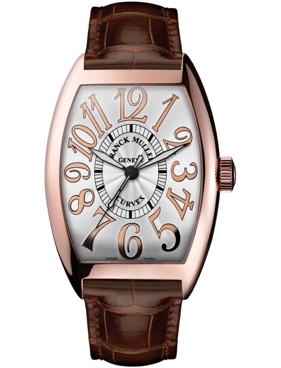 Cintree Curvex 34mm in Rose Gold on Brown Alligator Leather Strap with Silver Dial 6850SCREL5NE