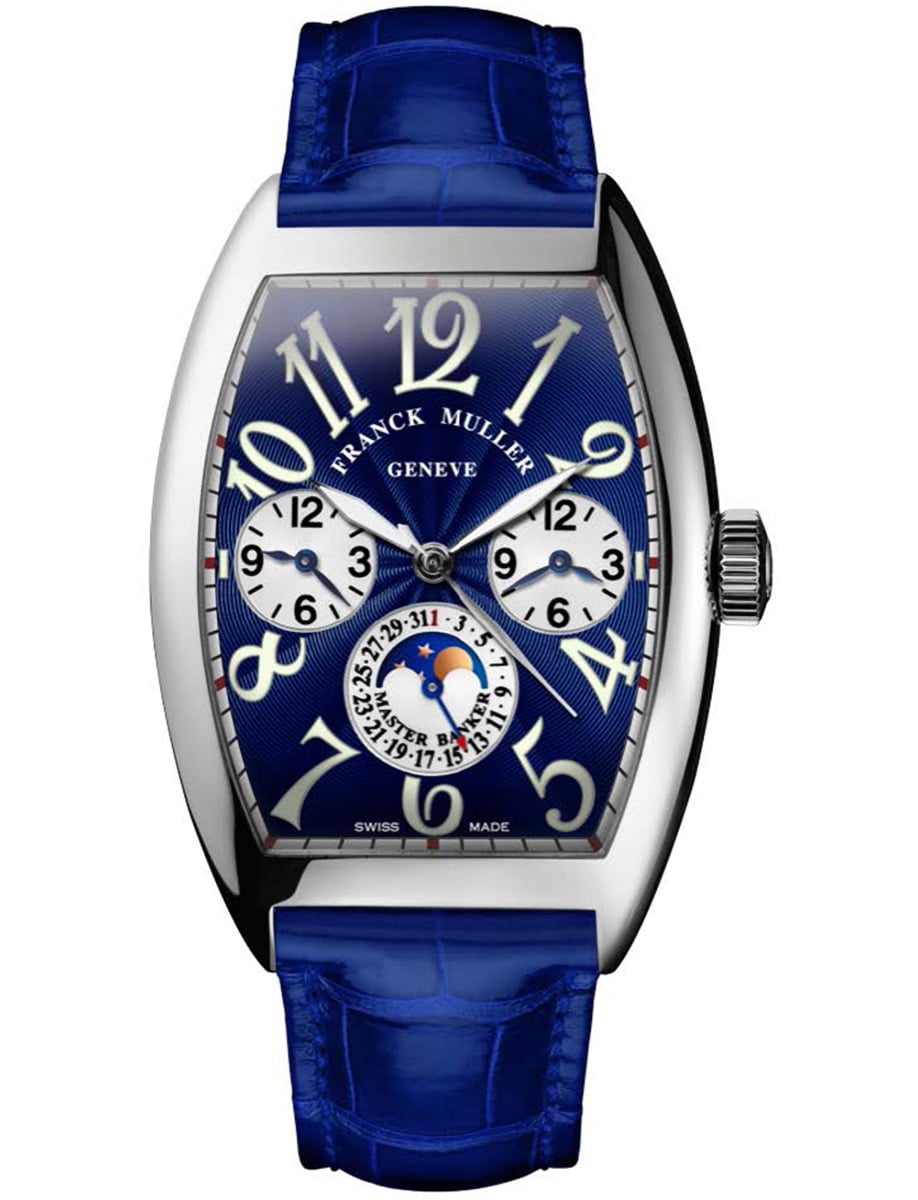 Cintree Curvex Master Banker 39mm in White Gold on Blue Alligator Leather Strap with Blue Dial 8880MBLWGBL
