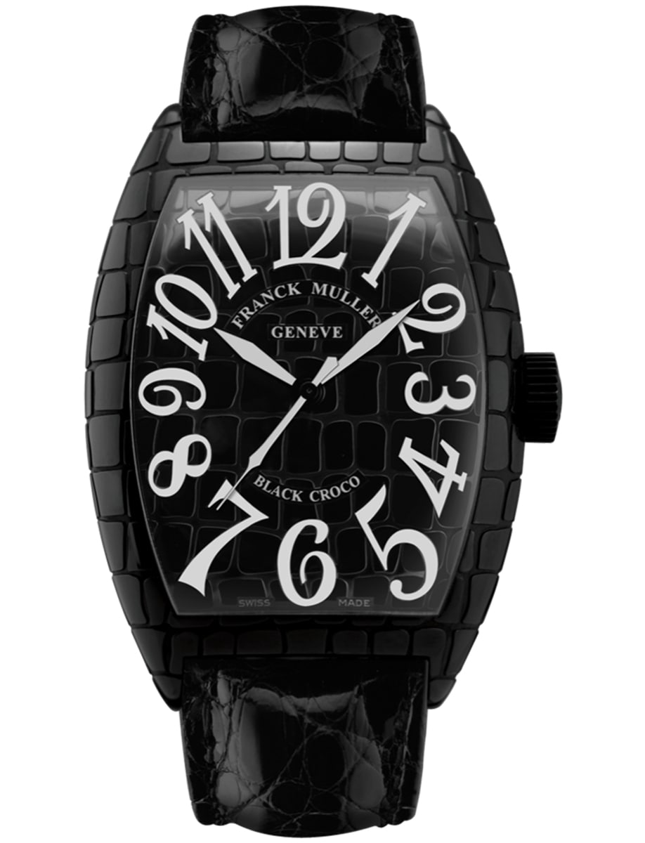 Cintree Curvex 55mm in Black PVD Steel on Black Alligator Leather Strap with Black Dial 8880SCBLKCROACB