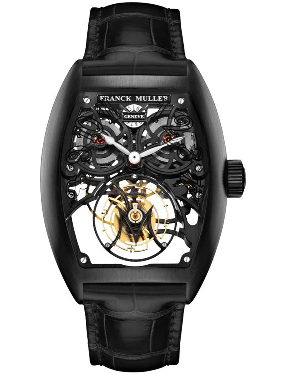 Giga Tourbillon 43.7mm in Black PVD Coated Steel on Black Crocodile Leather Strap with Skeleton Dial 8889TGSQTBRNRAC