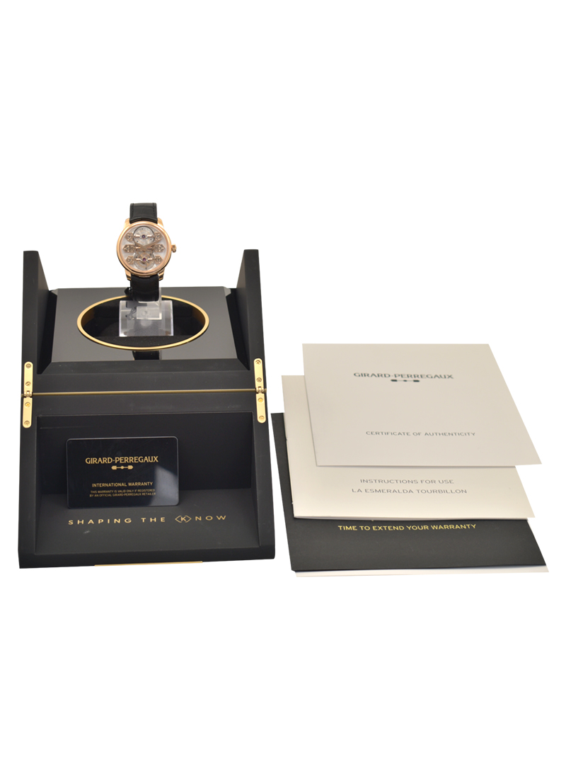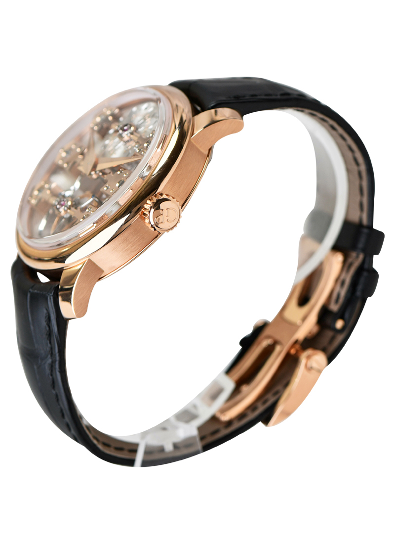 La Esmeralda Tourbillon 44mm in Rose Gold on Black Crocodile Leather Strap with Silver Dial 99275 52 000 BA6E