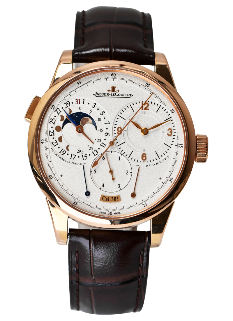 Duometre a Quantieme Lunaire in Rose Gold on Brown Crocodile Leather Strap with Silver Dial Q6042421