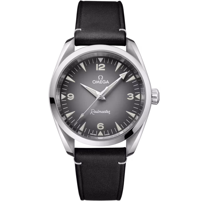 Seamaster Railmaster 38mm in Steel on Grained Calf Leather Strap with Grey Dial 235.12.38.20.06.001