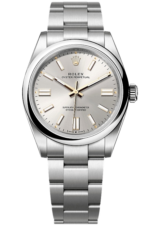 Oyster Perpetual 41mm in Steel with Domed Bezel on Oyster Bracelet with Silver Stick Dial 134300