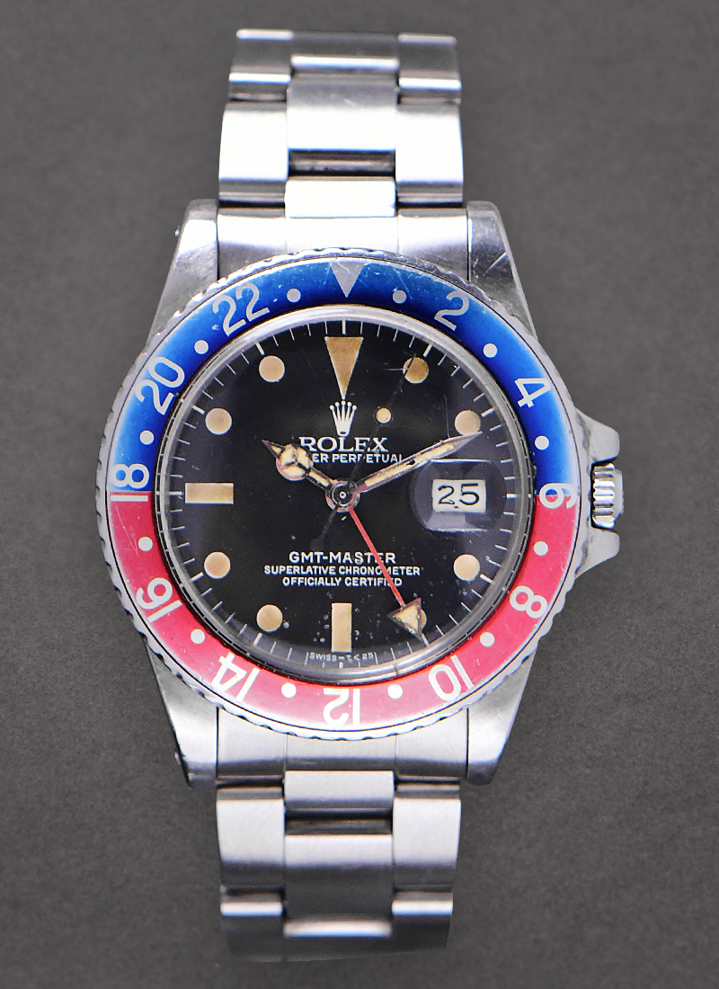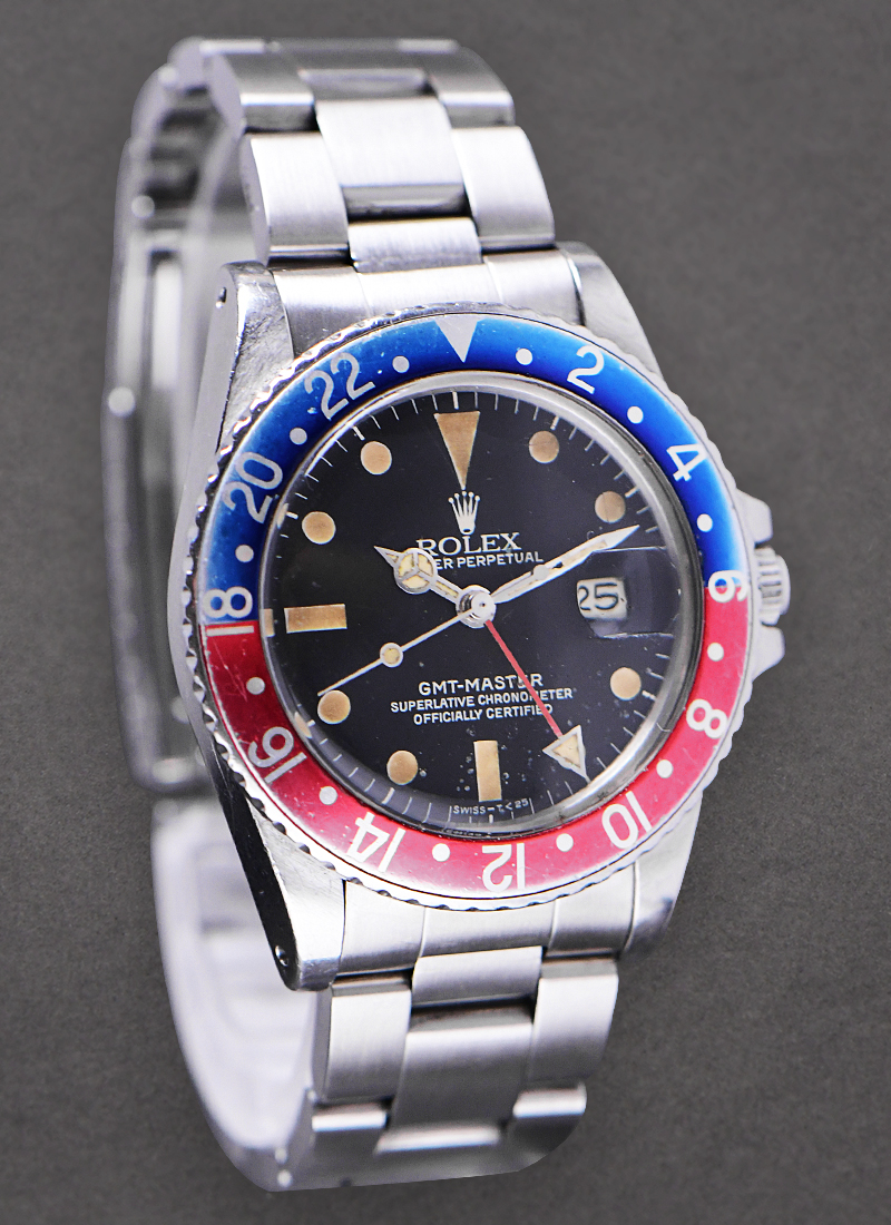 GMT Master Ref 16750 Pepsi - Circa 1980s on Oyster Bracelet with Black Patina Dial 16750