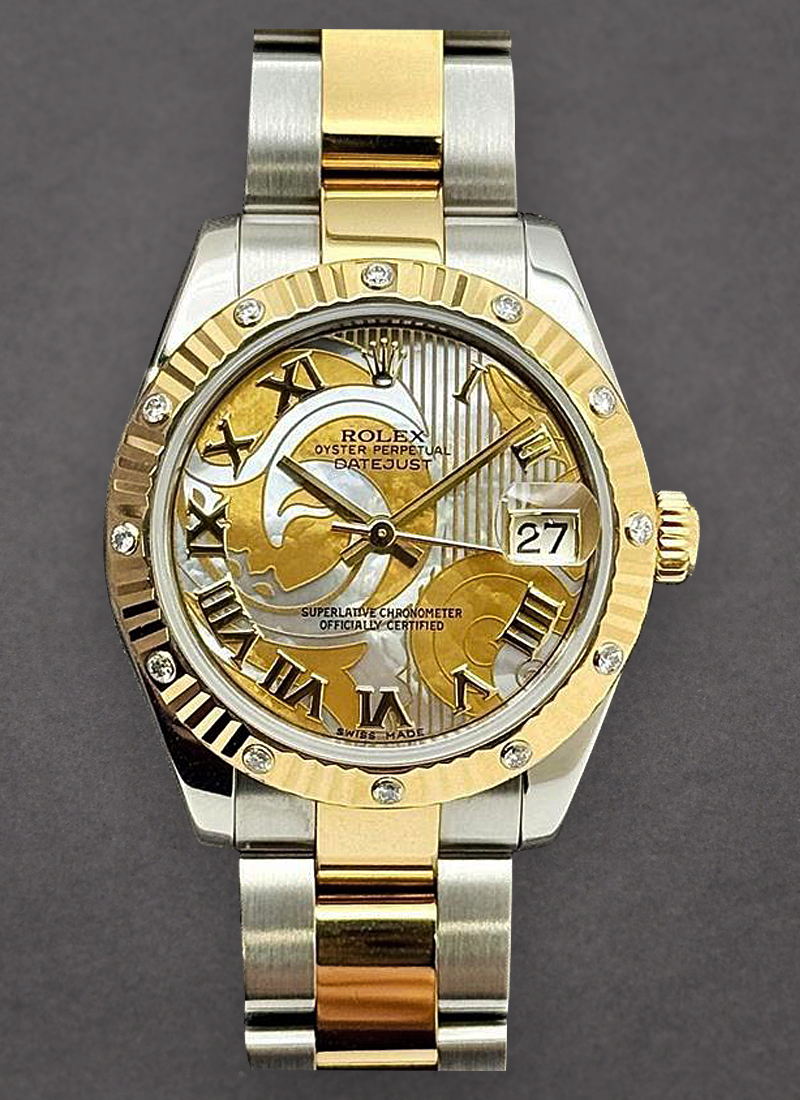 Datejust 31mm in Steel with Yellow Gold Fluted Diamond Bezel on Oyster Bracelet with Goldust MOP Roman Dial 178313