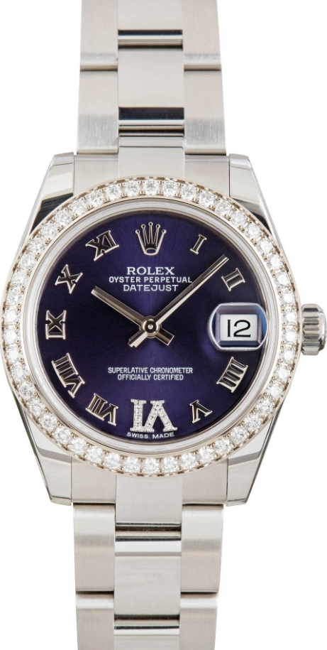 Datejust Oyster Perpetual 31mm in Steel with Diamond Bezel On Oyster Bracelet with Purple Roman Dial with Diamond VI 178384