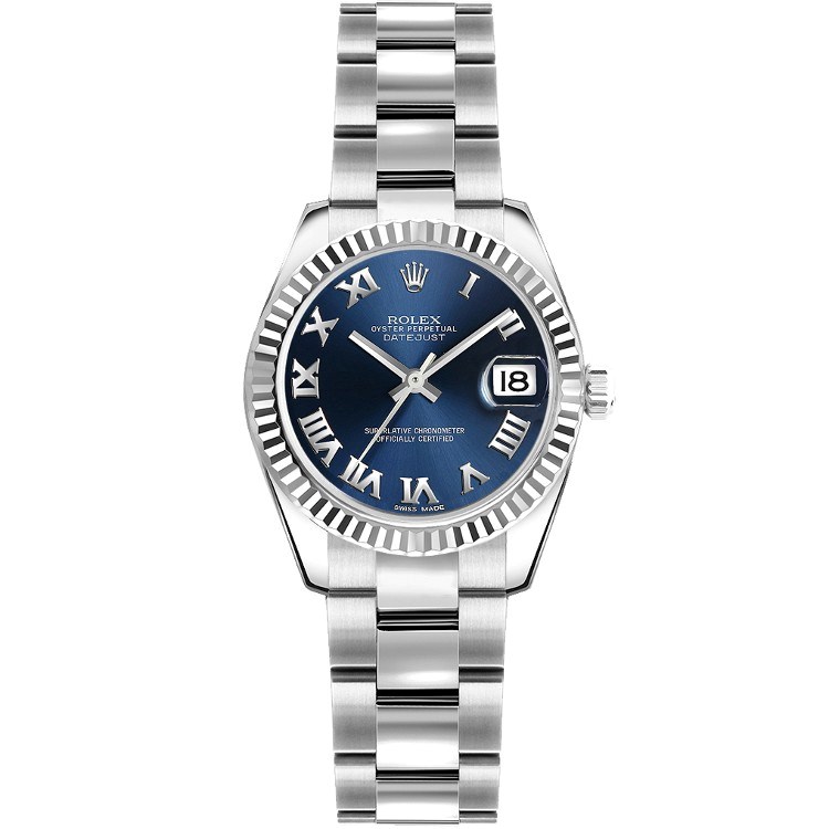 Datejust Lady's in Steel with White Gold Fluted Bezel on Steel Oyster Bracelet with Blue Roman Dial 179174