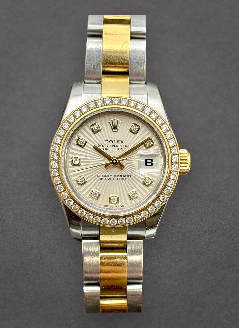 2-Tone Ladies Datejust 26mm with Diamond Bezel on Oystere Bracelet with Ivory Sunbeam Diamond Dial 179383
