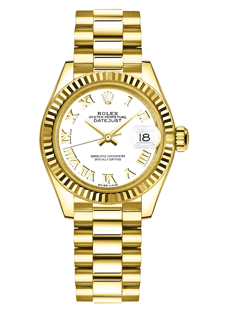 Ladies President in Yellow Gold with Fluted Bezel on Yellow Gold President Bracelet with White Roman Dial 279178