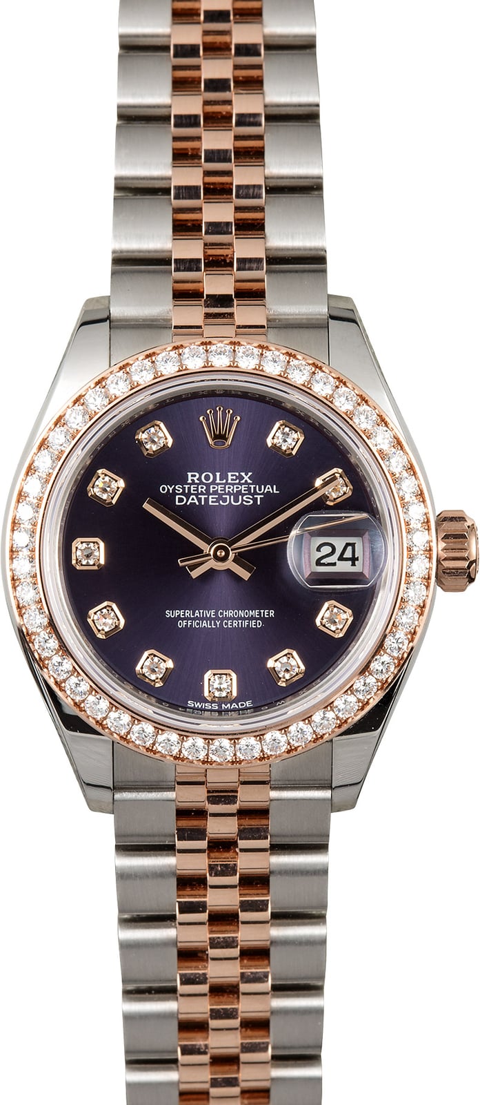 Datjust 2-Tone 28mm with Diamond Bezel on Jubilee Bracelet with Purple Aubergine Diamond Dial 279381