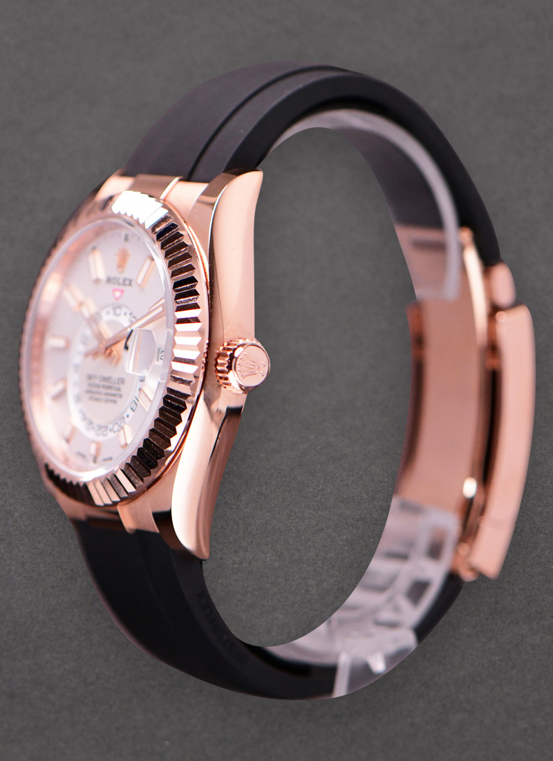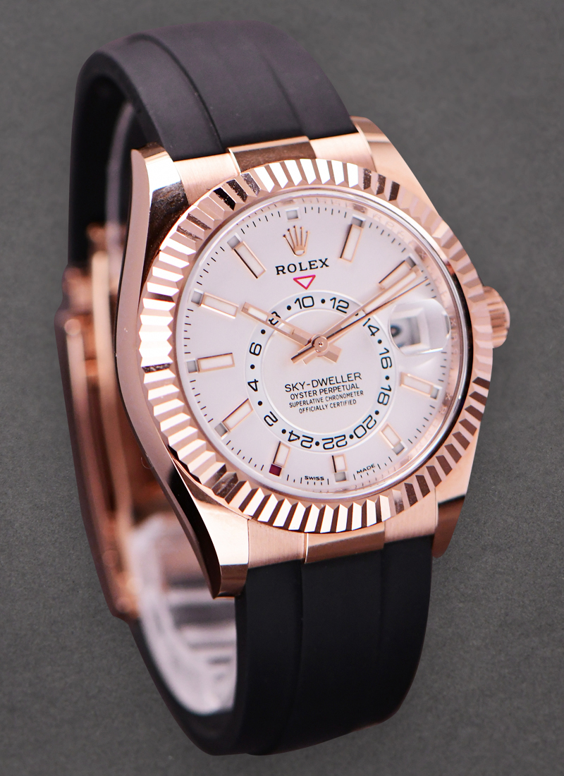 Sky Dweller 42mm in Rose Gold with Fluted Bezel on Strap with White Index Dial 326235