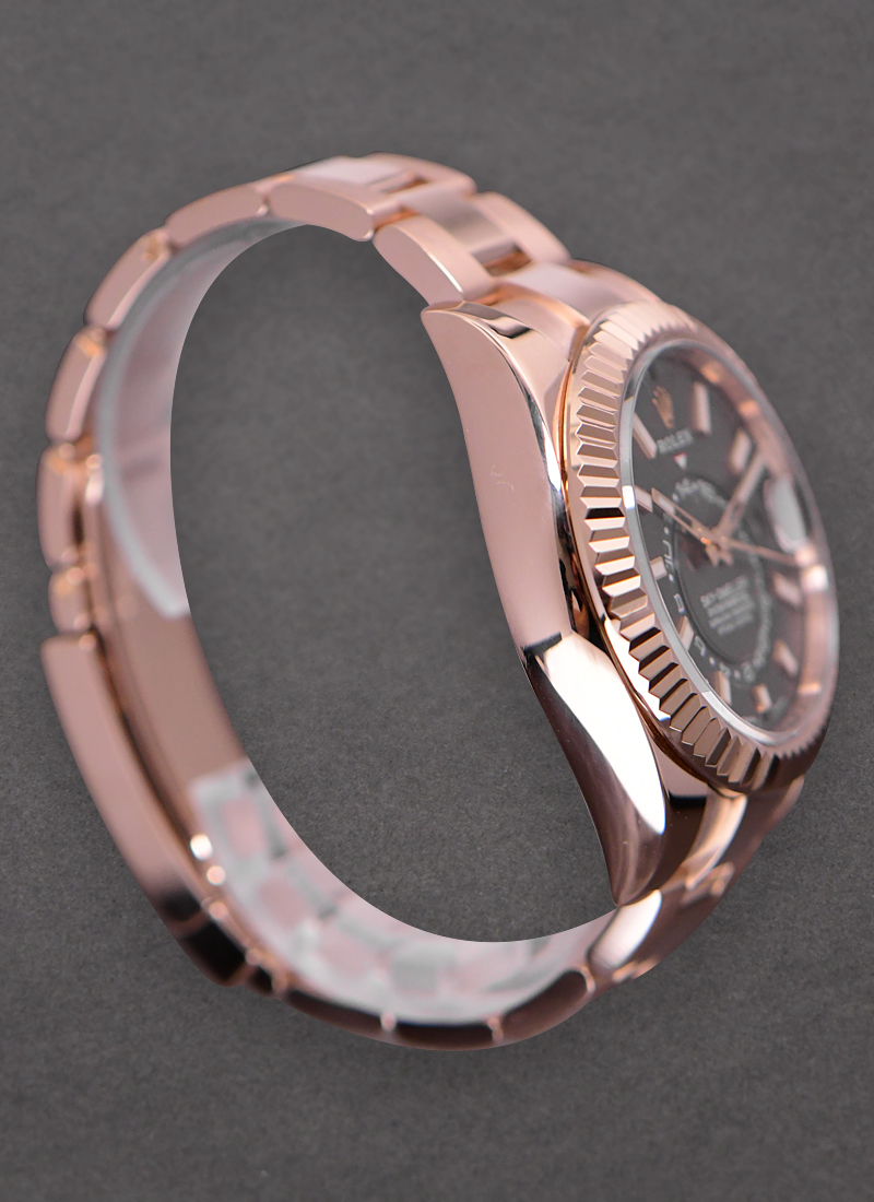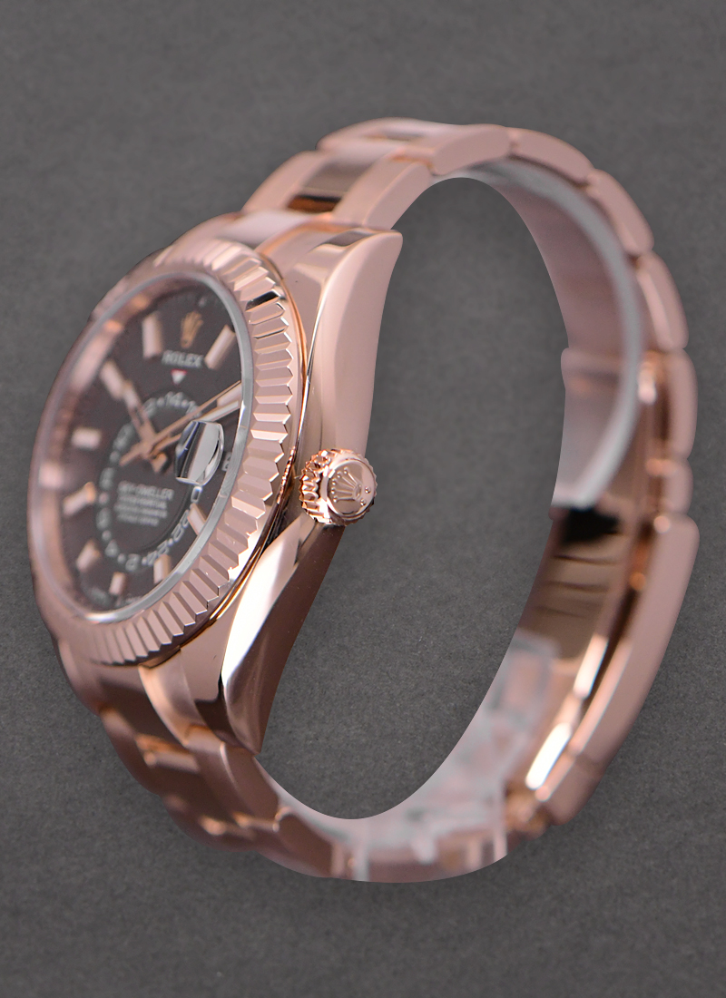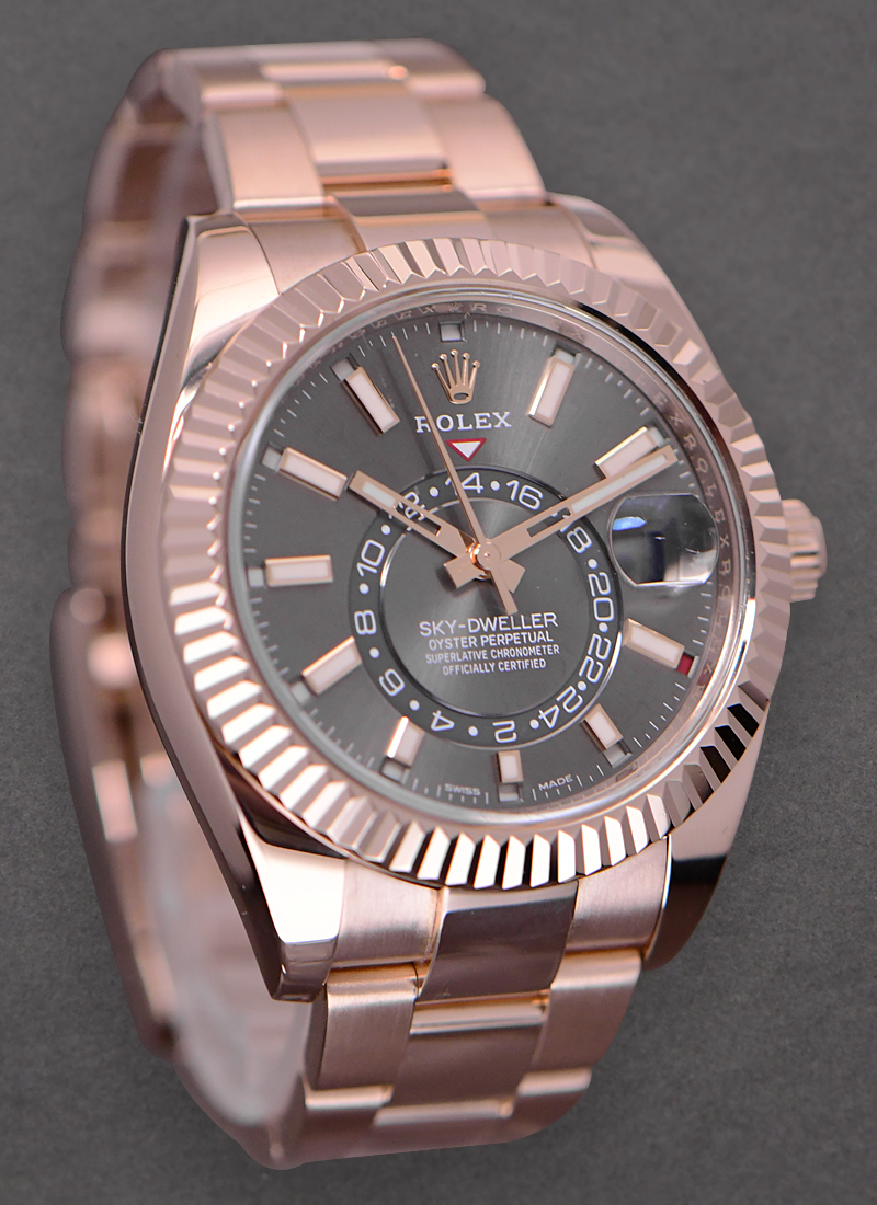 Sky Dweller in Rose Gold with Fluted Bezel on Oyster Bracelet with Rhodium Stick Dial 326935