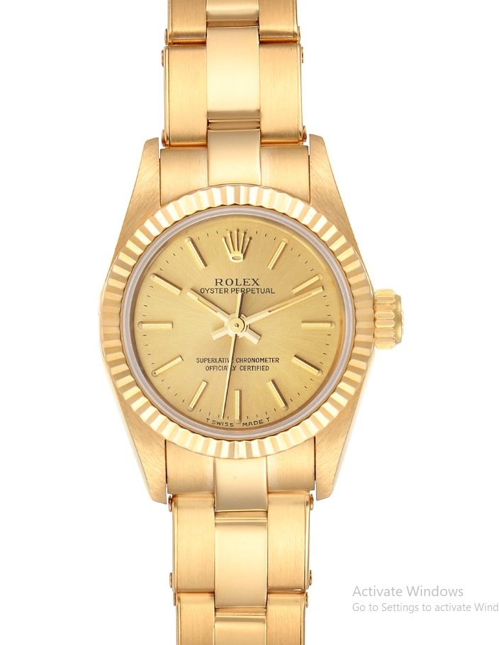 Oyster Perpetual No Date Lady's in Yellow Gold with Fluted Bezel on Oyster Bracelet with Champagne Stick Dial 67198