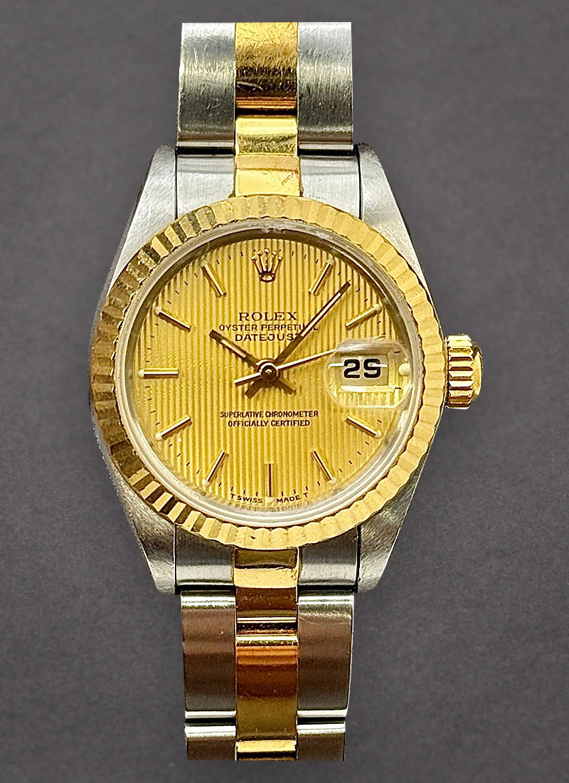 2-Tone Datejust Ladies 26mm on Oyster Bracelet with Champagne Tapestry Dial 69173