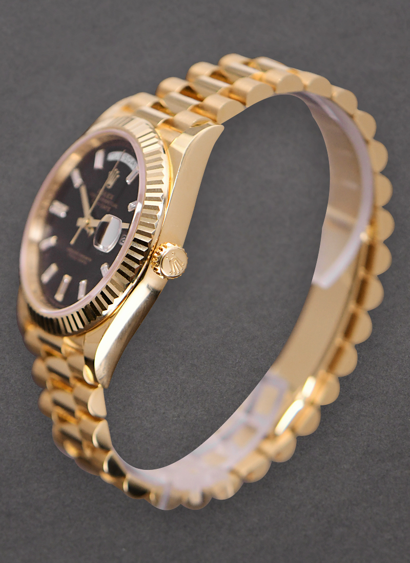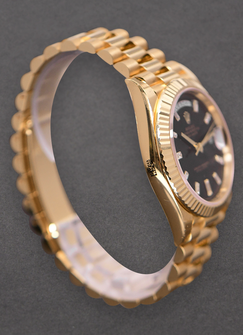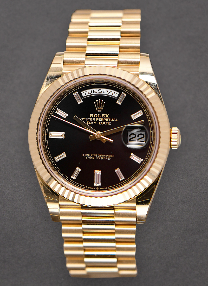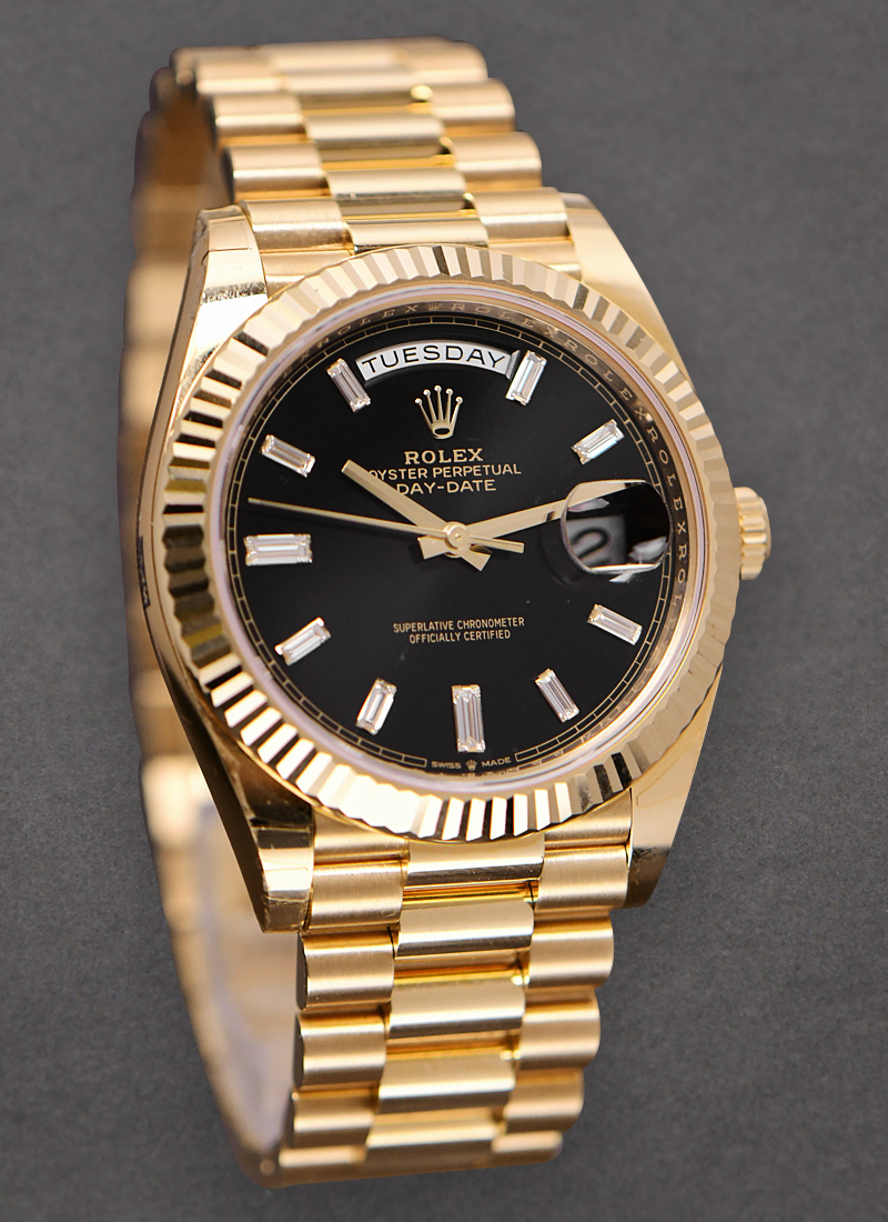 Preident Day Date 40mm in Yellow Gold Black Dial with Baguette Markers 228238