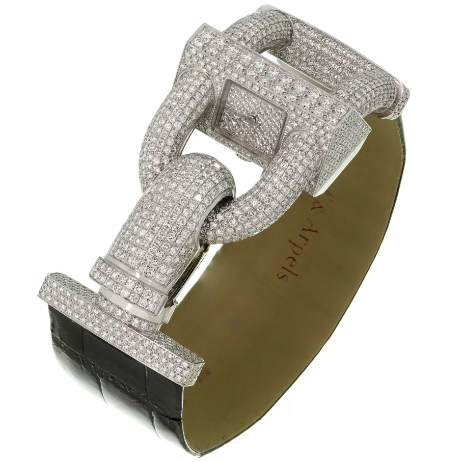 Cadenas Ladies Large in White Gold with Diamond Bezel On Black Crocodile Strap with Silver Dial VCARA98000