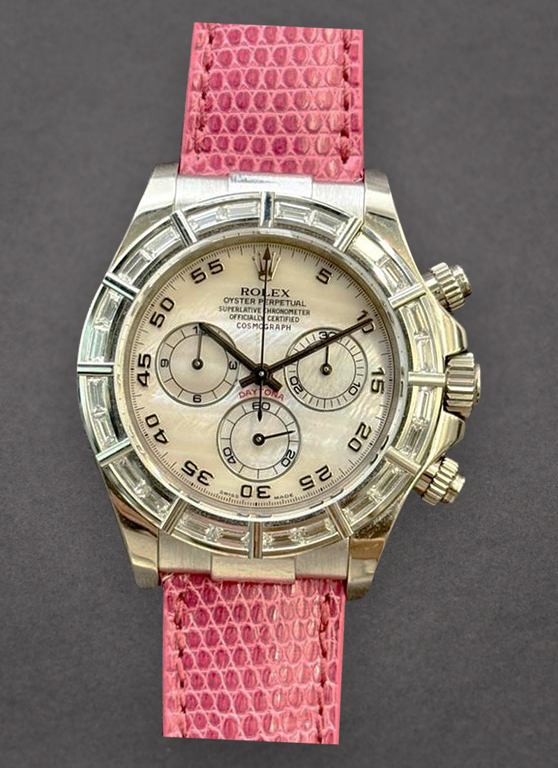 Daytona Special Edition in White Gold with Diamond Bezel on Pink Crocodile Leather Strap with MOP Arabic Dial 116589