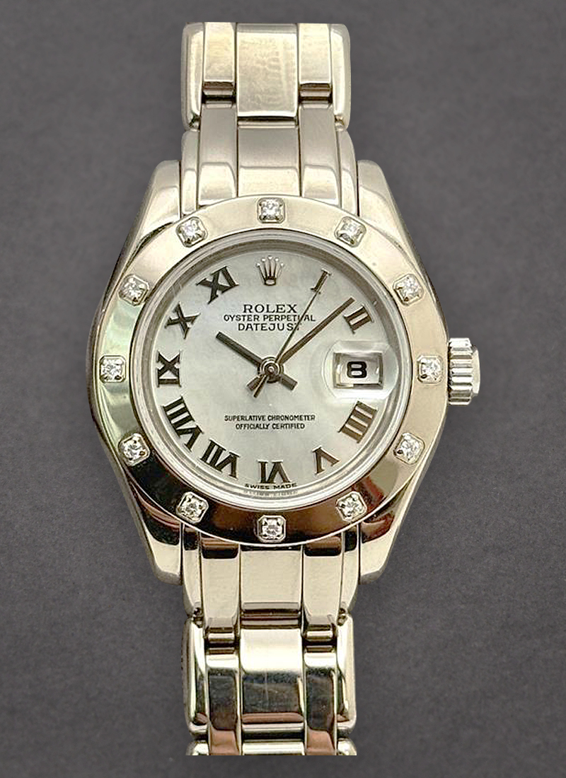 Masterpiece Lady's in White Gold with 12 Diamond Bezel on Pearlmaster Bracelet with MOP Roman Dial 69319