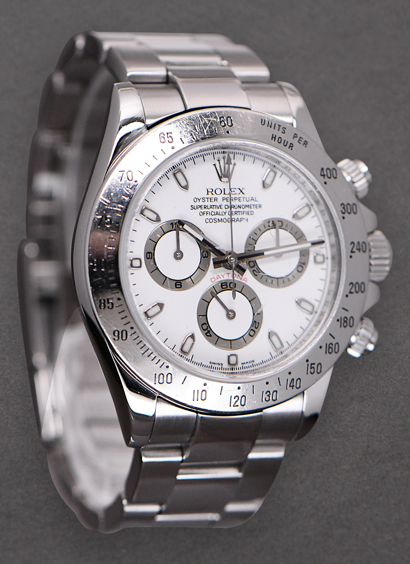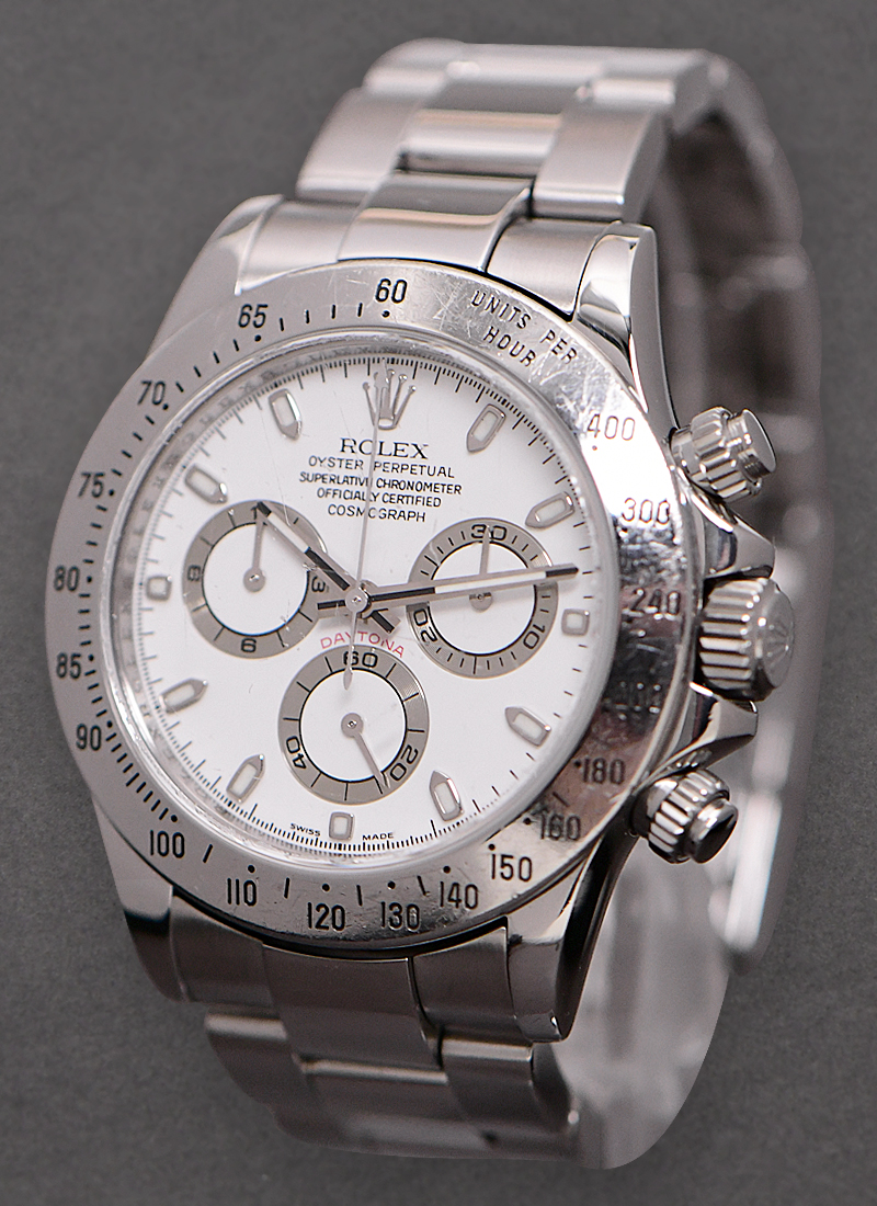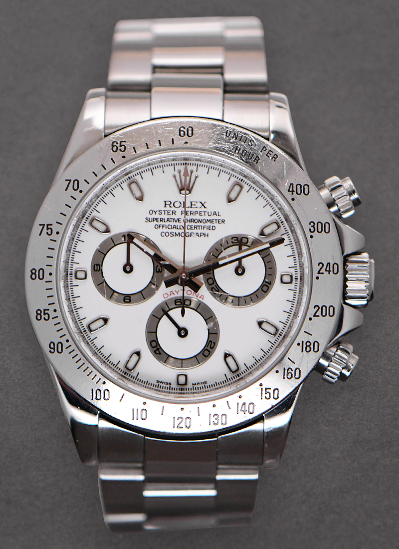 Steel Daytona with Engraved Bezel on Oyster Bracelet with White Dial 116520
