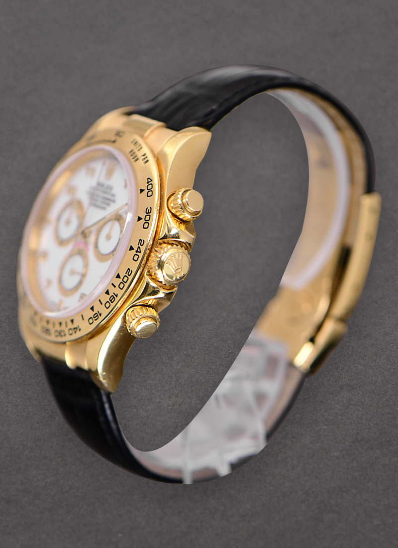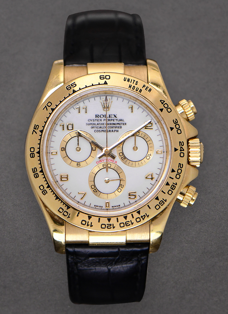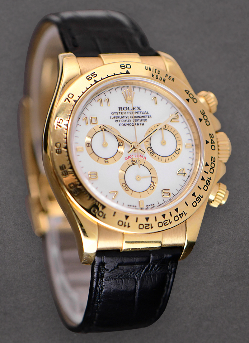 Daytona Cosmograph in Yellow Gold on Strap with White Arabic Dial 116518