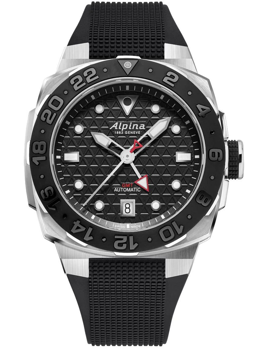 Seastrong Diver Extreme Automatic GMT 39mm in Brushed Steel on Black Rubber Strap with Black Dial AL 560B3VE6